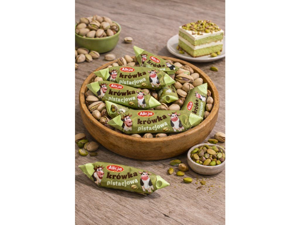Objevte pistáciovou karamelku – sladkost, která spojuje jemný karamel s křupavými pistáciemi. Každý sousto je měkké, sladké a doslova se rozplývá na jazyku, přinášejíc výjimečný chuťový zážitek.
